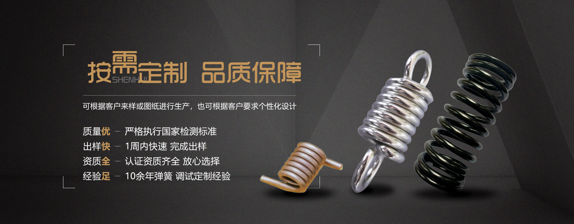 關(guān)于我們合肥神輝彈簧有限公司位于合肥市長(zhǎng)豐雙鳳經(jīng)濟(jì)開(kāi)發(fā)區(qū)雙墩路中南高科產(chǎn)業(yè)園43棟B座,我司專(zhuān)業(yè)生產(chǎn)、研發(fā)和銷(xiāo)售各類(lèi)彈簧(壓簧、拉簧、扭簧、碟簧),以“質(zhì)量?jī)?yōu)先,誠(chéng)信為本,客戶(hù)至上”為經(jīng)營(yíng)理念。公司擁有先進(jìn)的精密電腦數(shù)控彈簧成型機(jī)、磨簧機(jī)、以及檢驗(yàn)設(shè)備等。公司技術(shù)力量雄厚,有一支高素質(zhì)、會(huì)管理、懂業(yè)務(wù)的管理人才和熟練的技術(shù)人員隊(duì)伍。公司可根據(jù)用戶(hù)的要求,設(shè)計(jì)生產(chǎn)各類(lèi)型彈簧。我們將以“先進(jìn)的技術(shù)、優(yōu)良的品質(zhì)、合理的價(jià)格、周到的服務(wù)”滿(mǎn)足客戶(hù)的需求。
